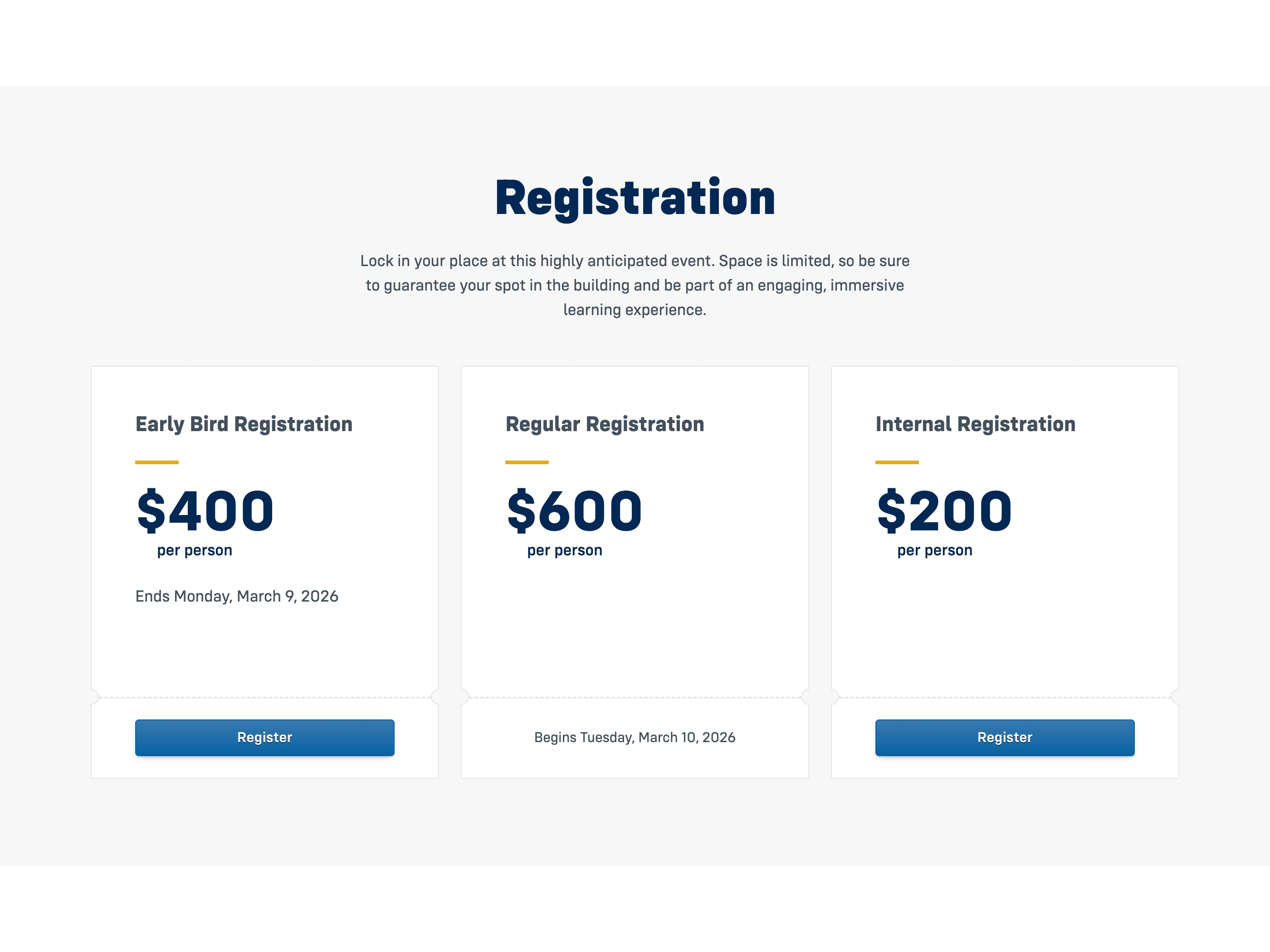 The listing surfaces critical information at a glance, while detail pages provide a deeper, structured view for attendees seeking schedules, registration, and accreditation details.