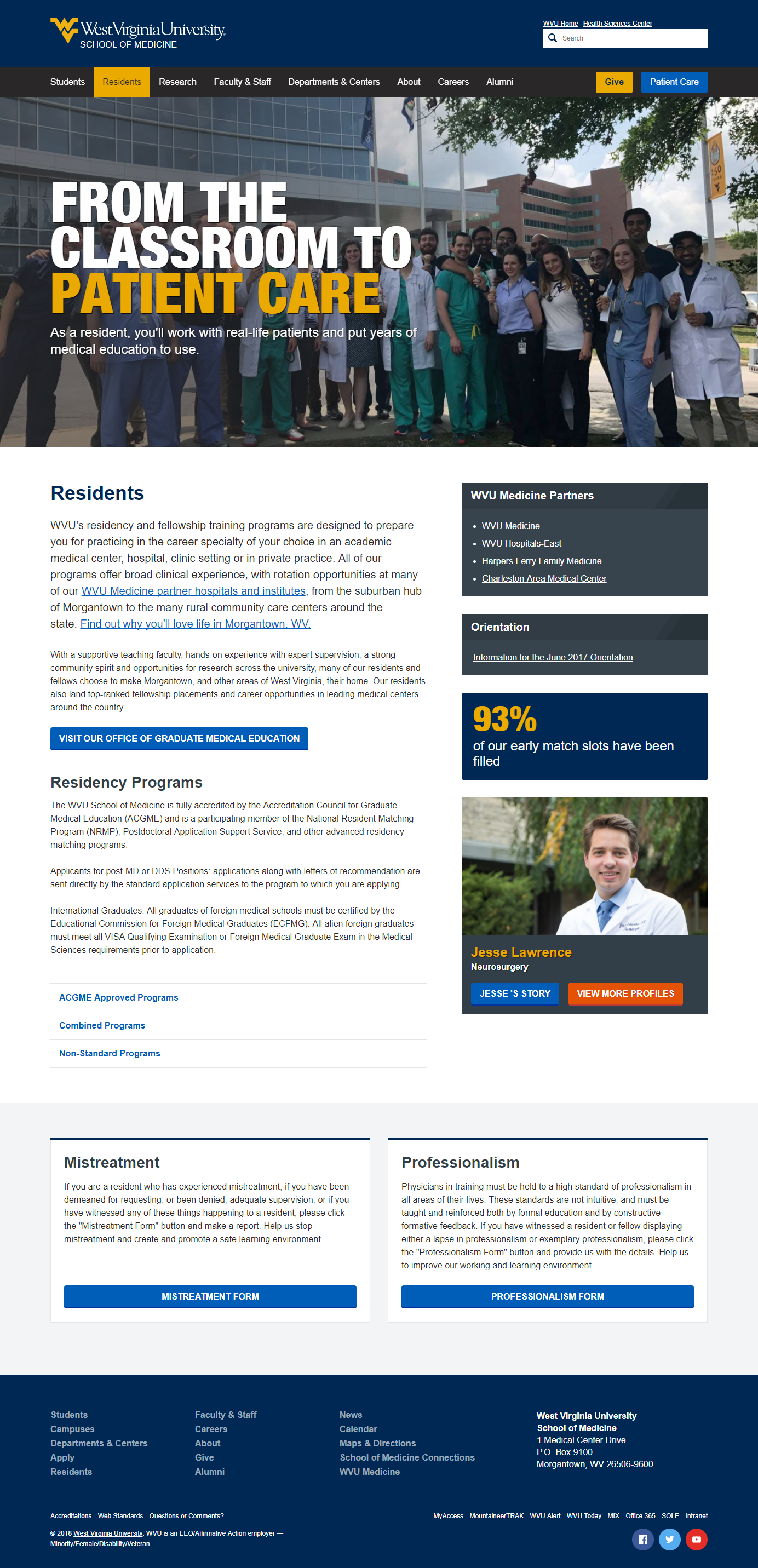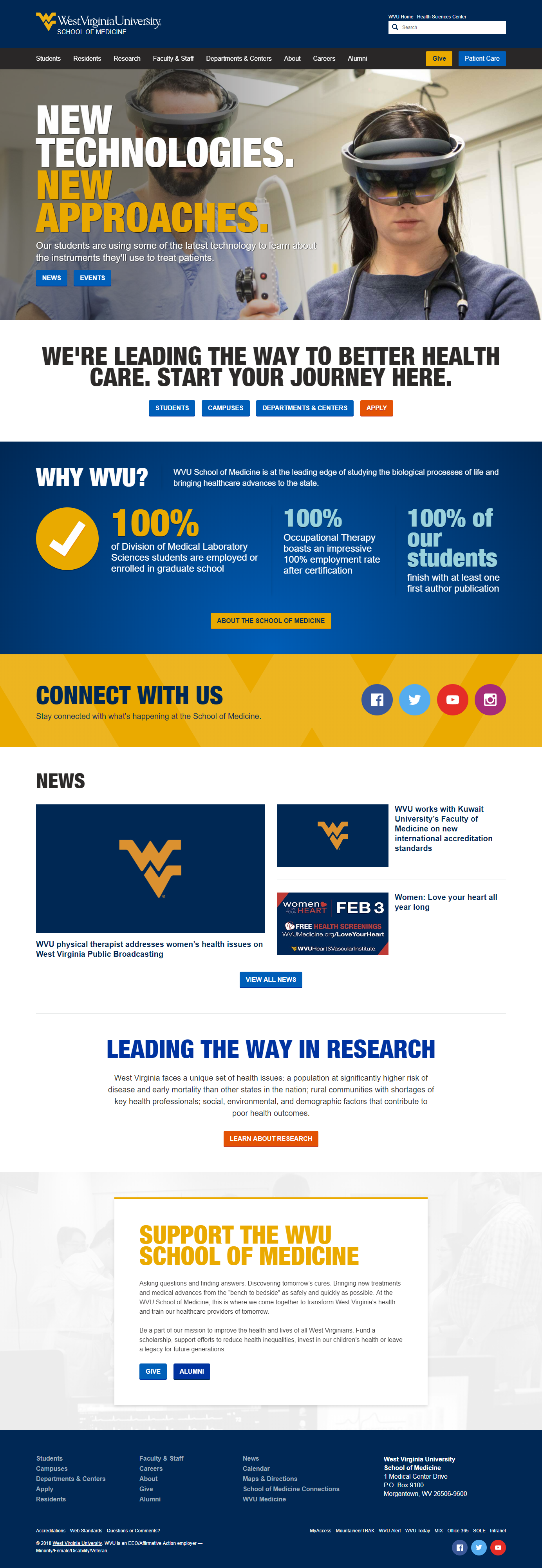 As one of the largest websites at West Virginia University, the focus of the School of Medicine homepage is to welcome a broad audience to the school and efficiently guide them to the information they need.